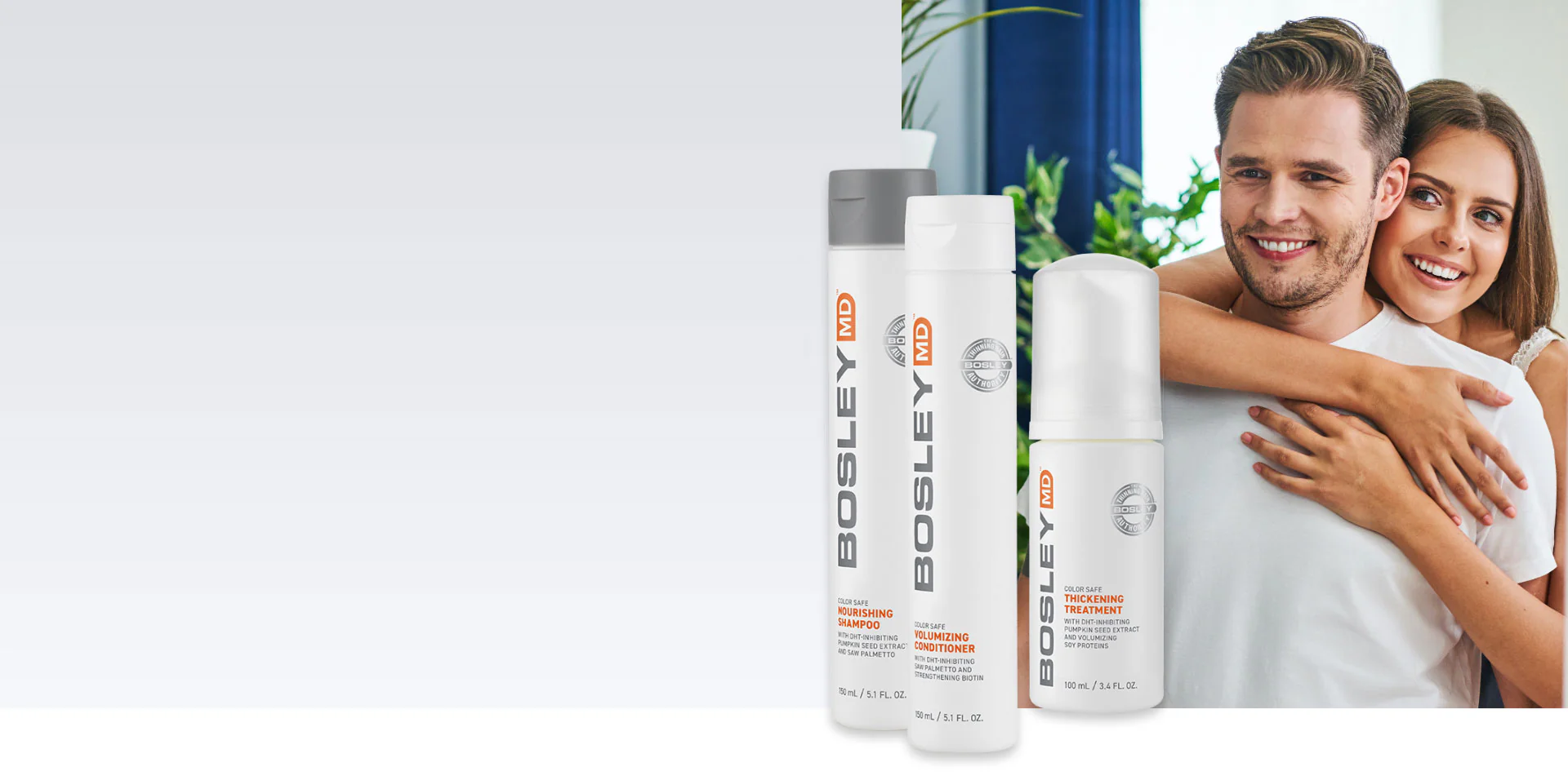 Both the BosDefense and the BosRevive Haircare Regimens include Nourishing Shampoo, Volumizing Conditioner and Thickening Treatment. They are available in formulas for both non color-treated hair and color-treated hair, which contains ColorKeeper Complex to help extend color.